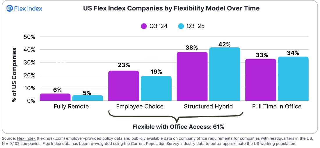 Most people think “hybrid” when they talk about flexibility and office access. But Employee Choice models - where there’s no single company or function-level policy - also provide access to spaces for team collaboration and individuals who need it. Get the FlexIndex report.